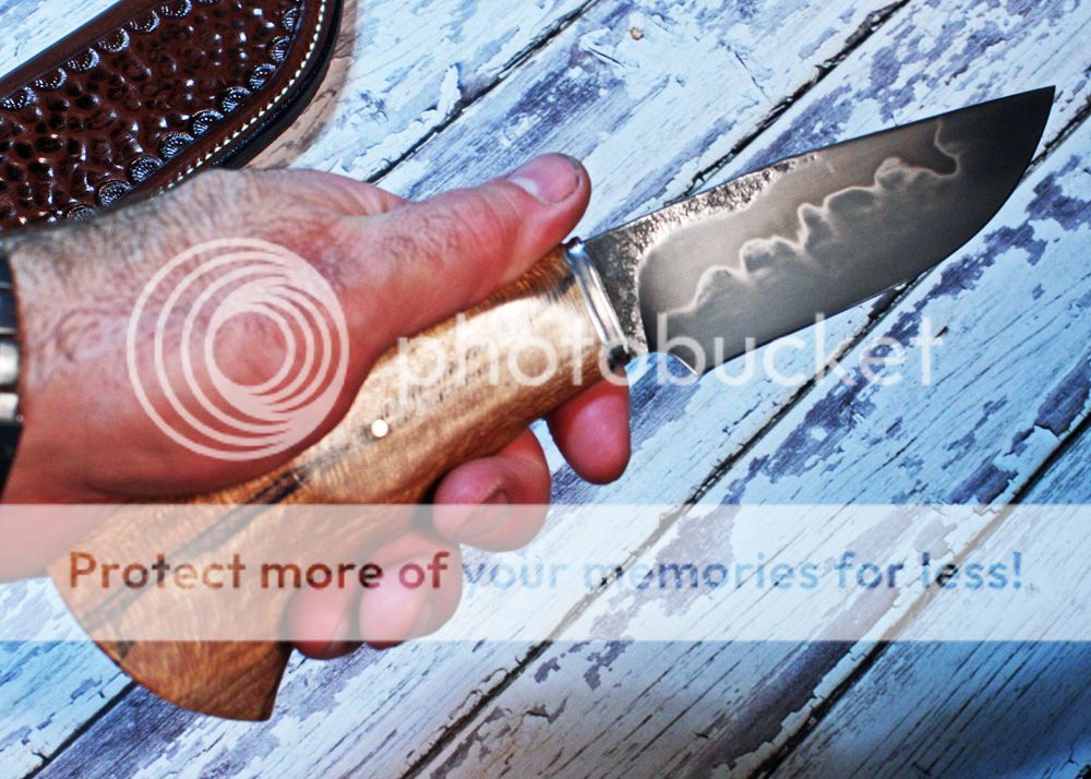 I forged this one from some of Don's W2. It is hand polished to 2000 grit. I clay quenched it and etched it to bring out a nice hamon with a lot of activity. The hamon on this one just pops.