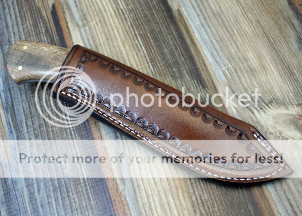 The sheath is 7-8oz hand tooled leather from Wickett and Craig.