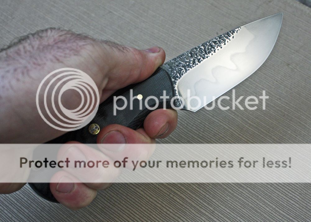 The handle is black canvas micarta. It is faceted and fits well in the hand. It is held in place with pins and G-flex epoxy. It is comfortable to hold and provides nice grip.