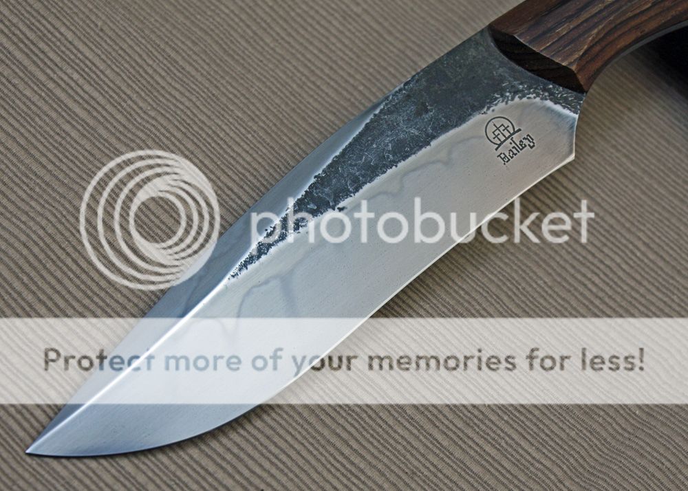 This blade is forged from Hanson's W2. It has been clay quenched for a nice hamon. I hand sanded it to 1500 grit and etched it.