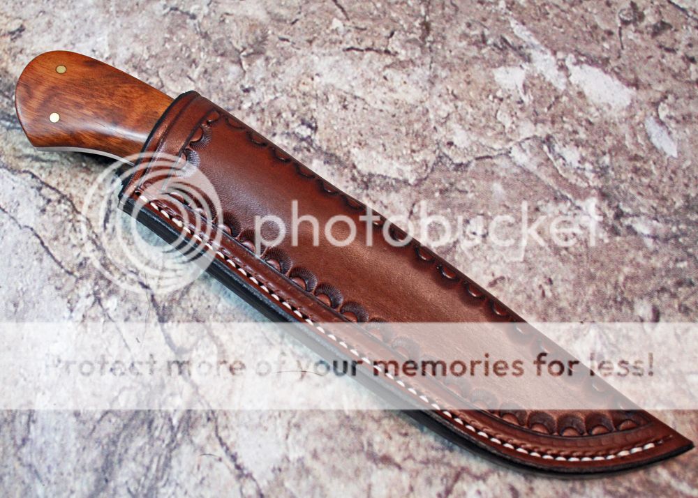 The sheath is 7-8oz hand tooled leather from Wickett and Craig.