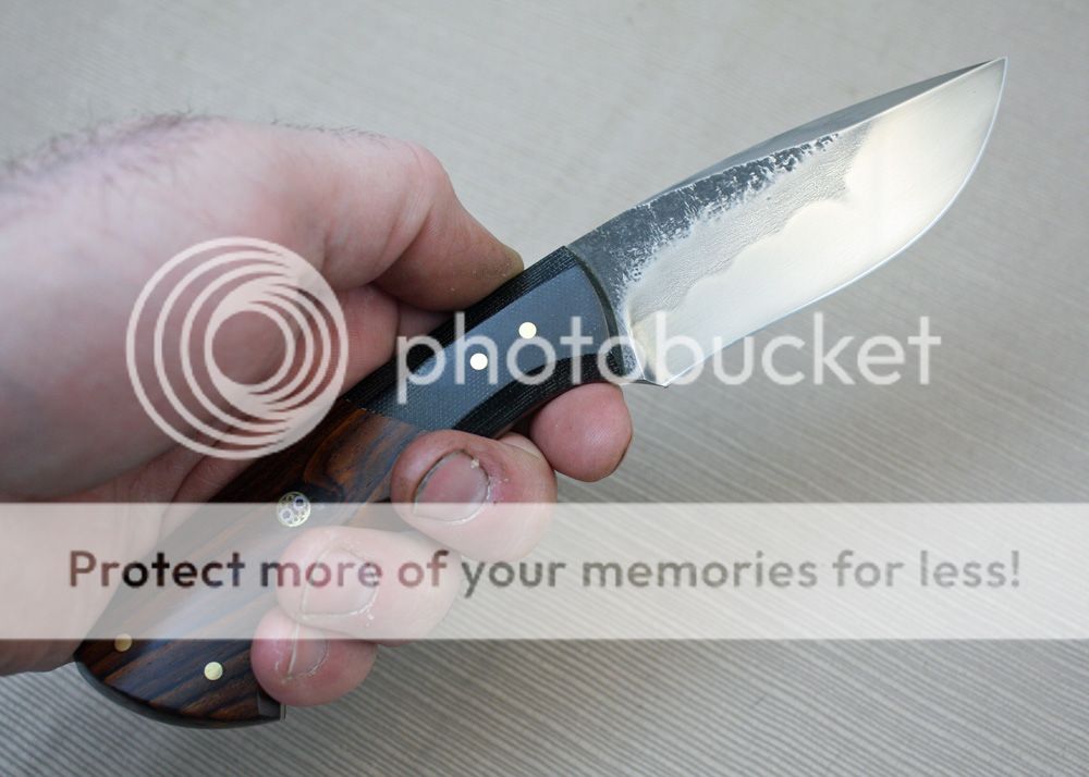 The handle is black linen micarta with cocobolo. It is faceted and polished and really fits the hand well.