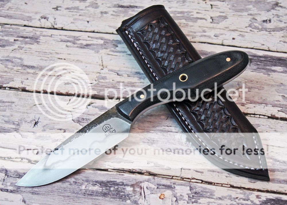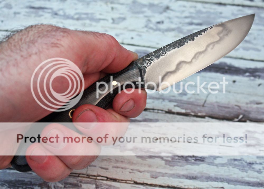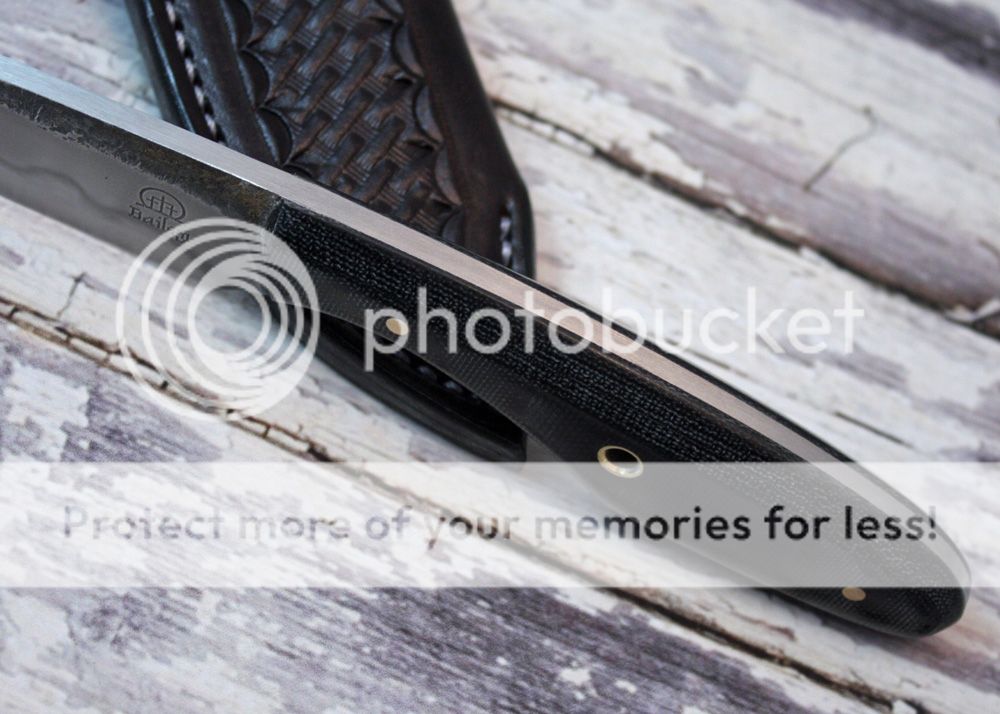 The handle is black canvas micarta. It is shaped to fit well in the hand. It is held in place with pins and G-flex epoxy.