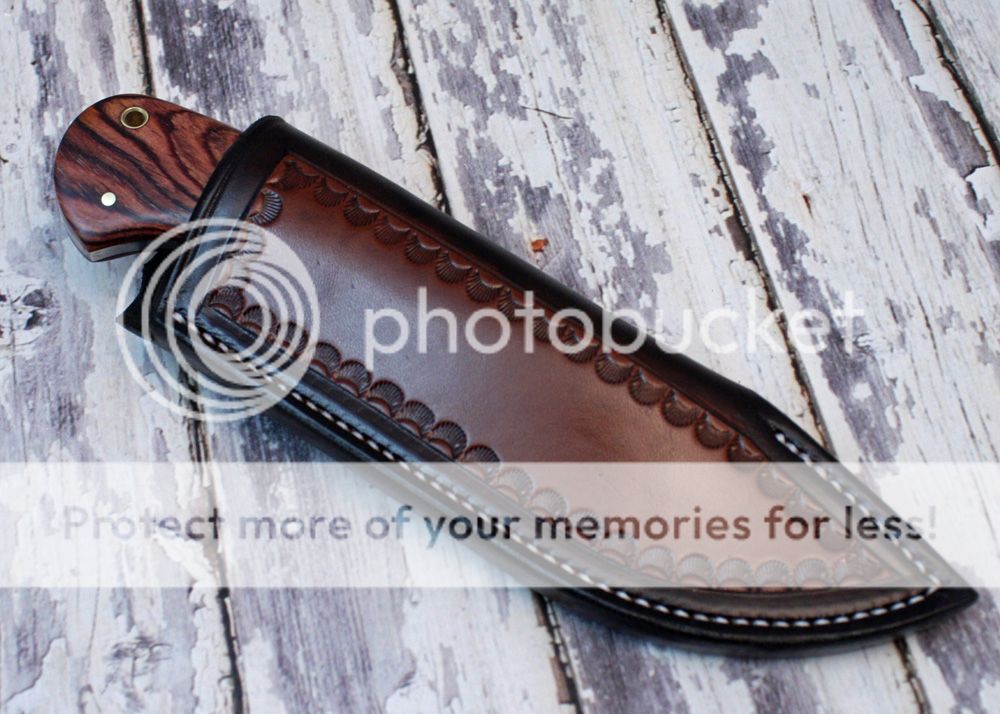The sheath is 8-9oz leather from Wickett and Craig. It holds the knife snugly and allows it to draw easily.