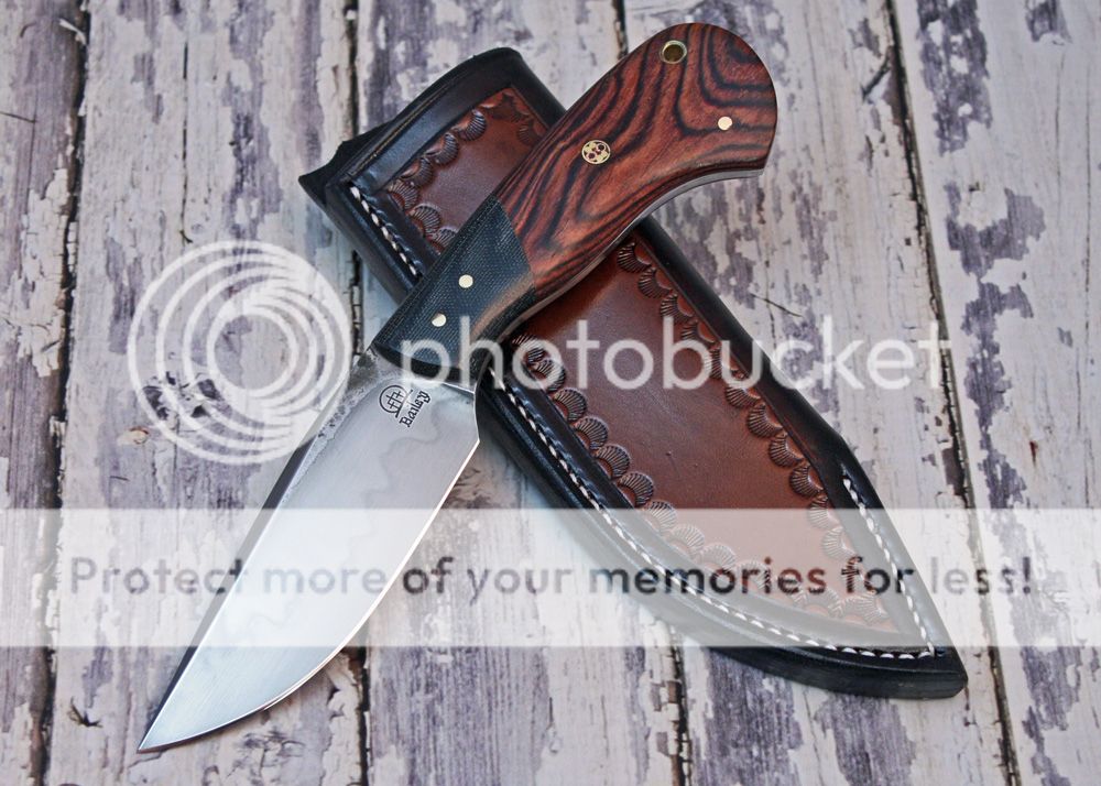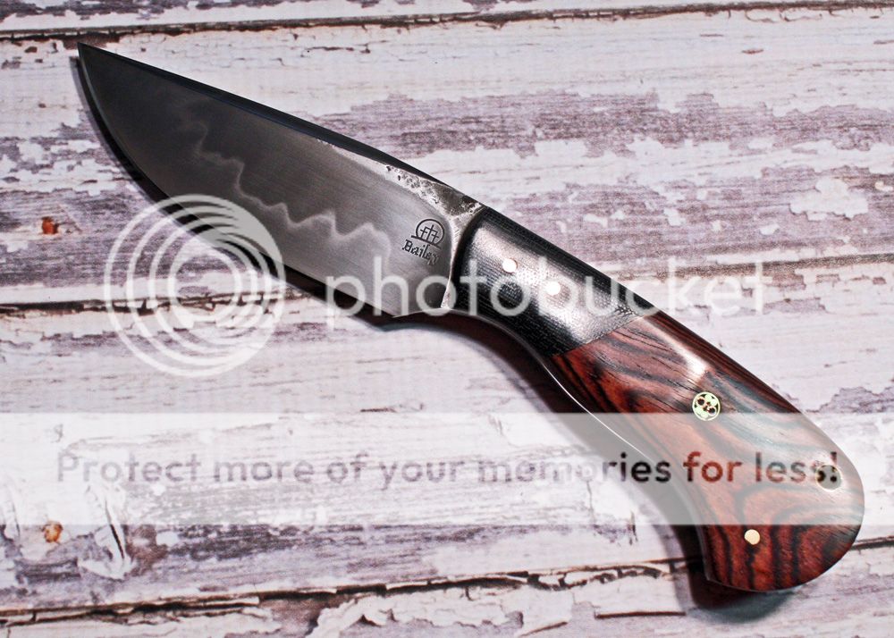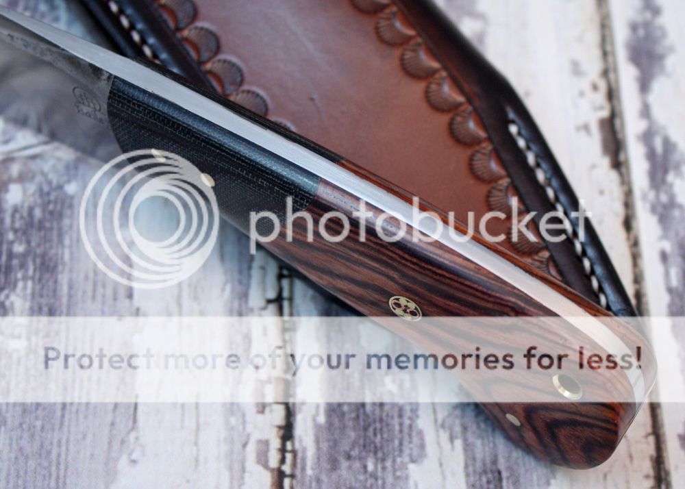 The handle is some nice deeply figured cocobolo with micarta bolsters. It has been shaped and sculpted to fit the hand and is held in place with pins and G-flex epoxy.