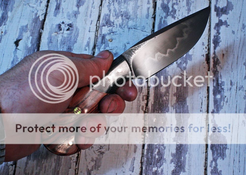 Here is a W2 hunter I just finished up. The blade has been clay quenched for a nice hamon. I hand polished it to 2000 grit to bring out the details.