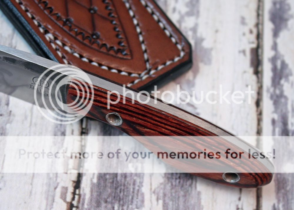 The handle is cocobolo. It is held in place with tubes and G-flex epoxy. It really fits the hand well.