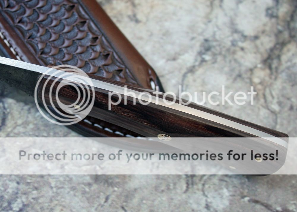 The handle is Cocobolo. It is faceted and feels comfortable in the hand. It is held in place with pins and G-flex epoxy.