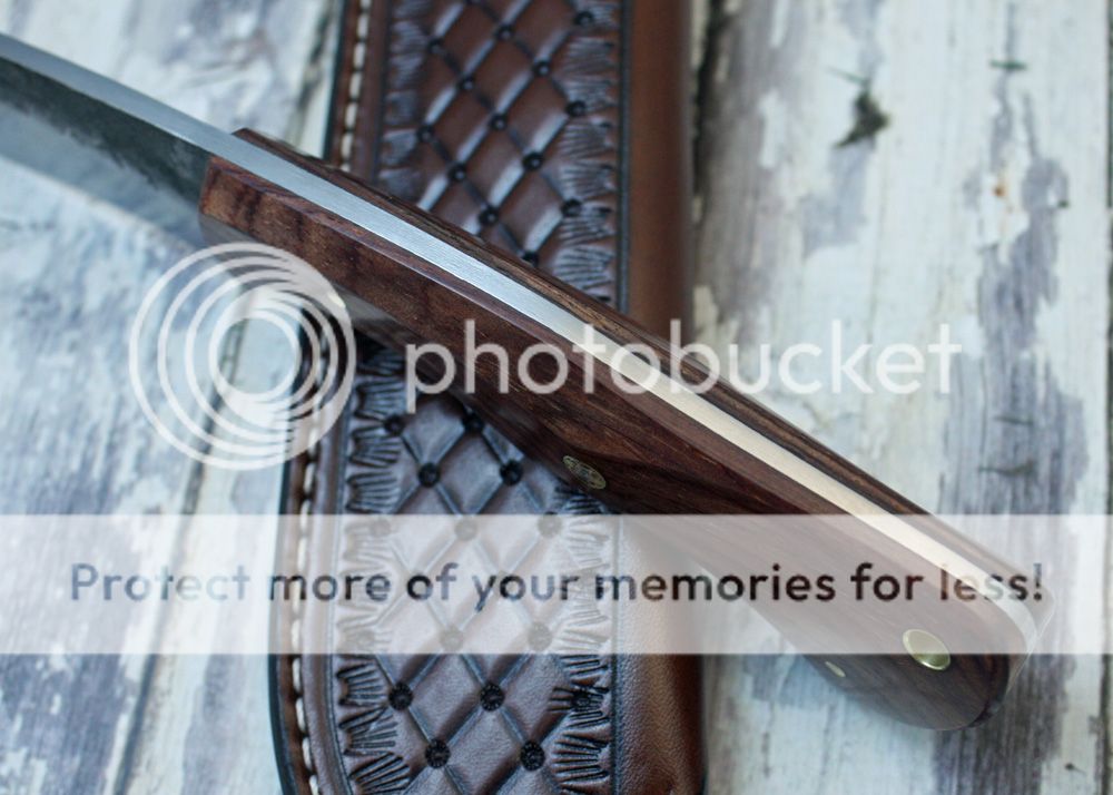 The handle is cocobolo. It has faceted faces on it and is polished to a nice luster. It feels great in the hand and just kind of melts away when you make a fist around it. It is held in place with pins and G-flex epoxy.