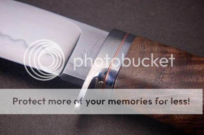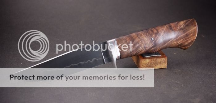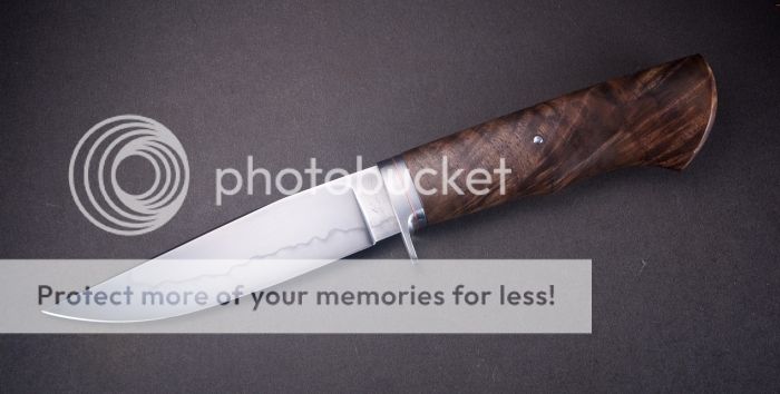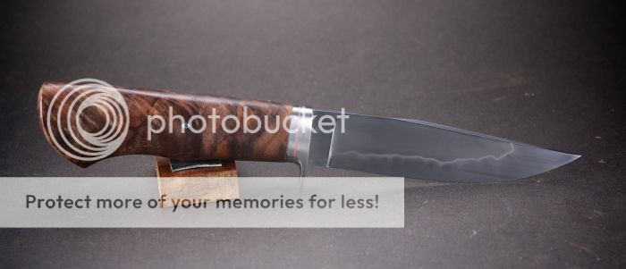 It has a 5" blade of DHIII's W2 with hamon and walnut also from DHIII I bought off of him about 3 years ago. Beautiful and nice and dense.