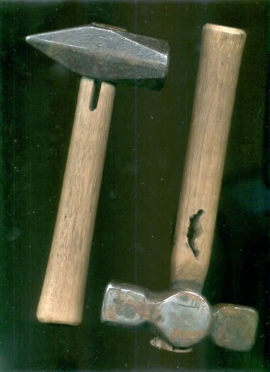 I was leafing thru one of Wayne's books: ('the joy of knife making' or something like that?) Anyway he told of how he learned from some blacksmiths how to modify a wood handle on the main blacksmith hammer. Something to the effect of cutting a notch about four inches long from the head down, or ripping the whole handle and then putting a piece of dark wood in the gap. It was supposed to decrease hand shock and now he uses it religiously. I just got a new hammer and I want to do it. I didn't buy that book but bought the "$50 Knife Shop" as per everyones recommendation. Any helps?