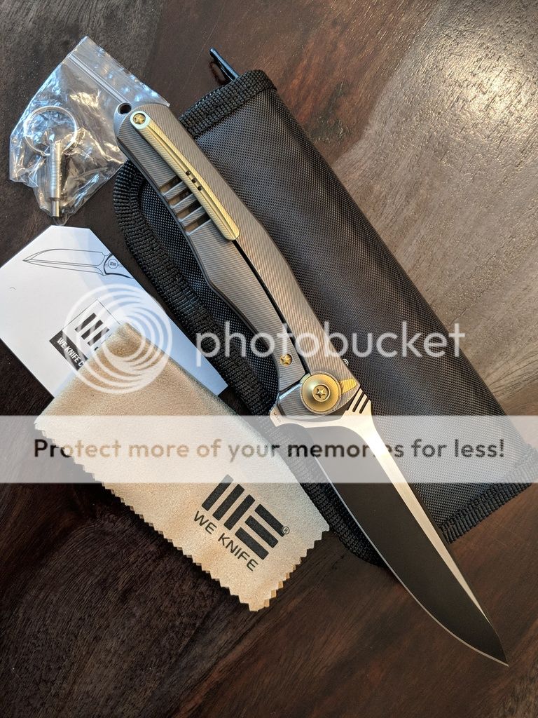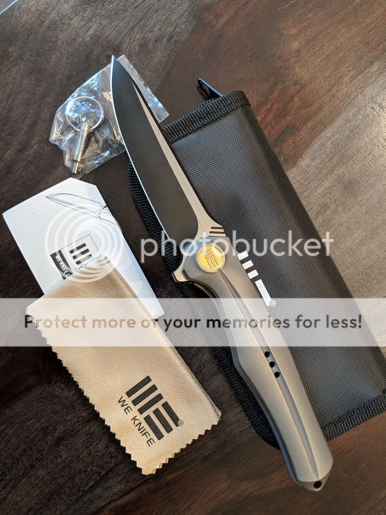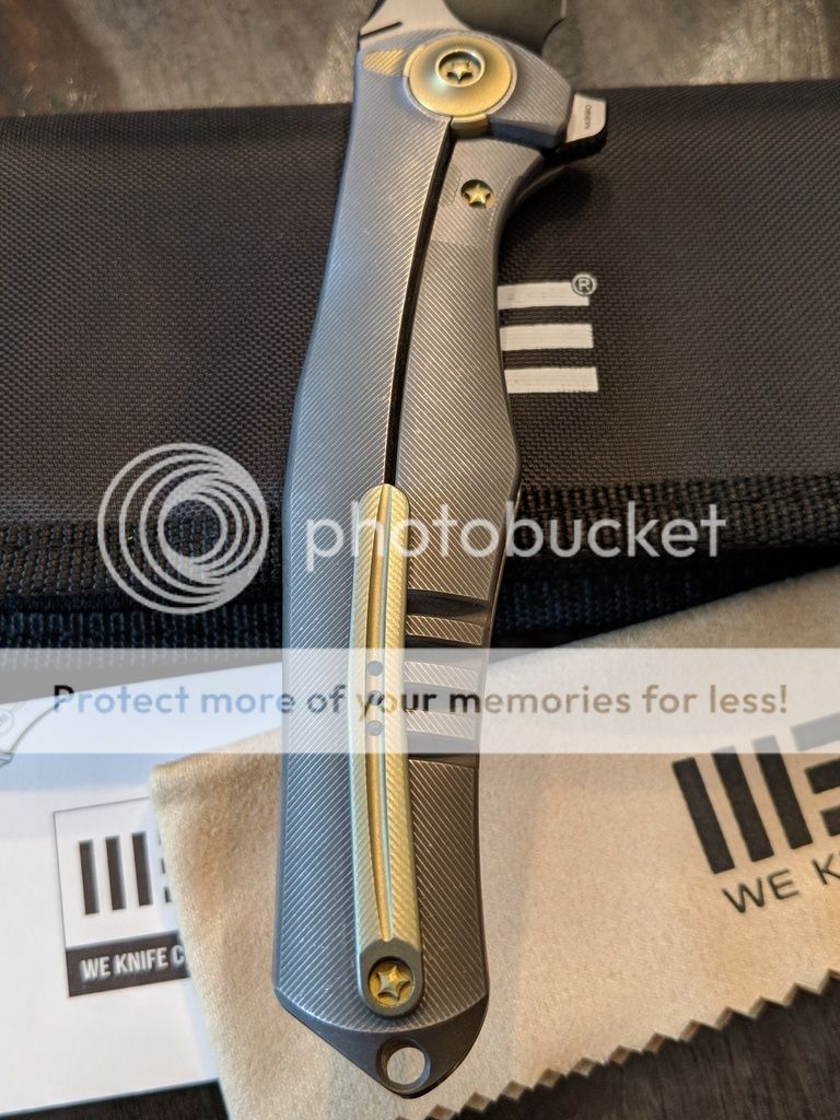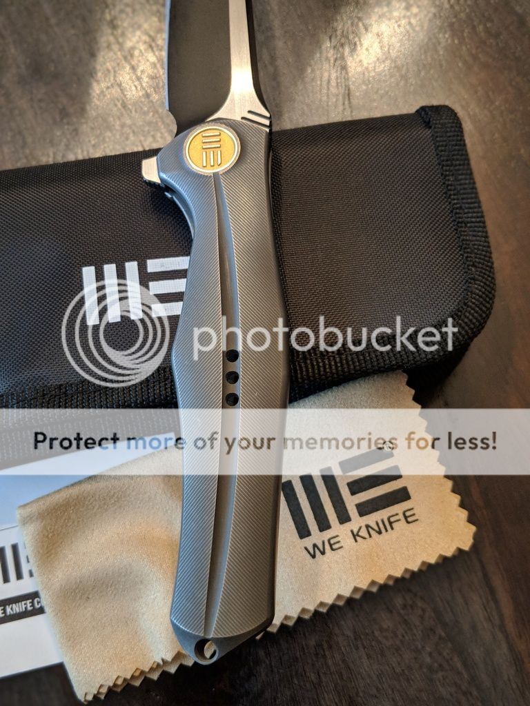 WE knives 702c. Used and carried with some very light snail trails on integral handle. Amazing action and drops shuts. Stout knife that carries really well and feels awesome in hand. $225