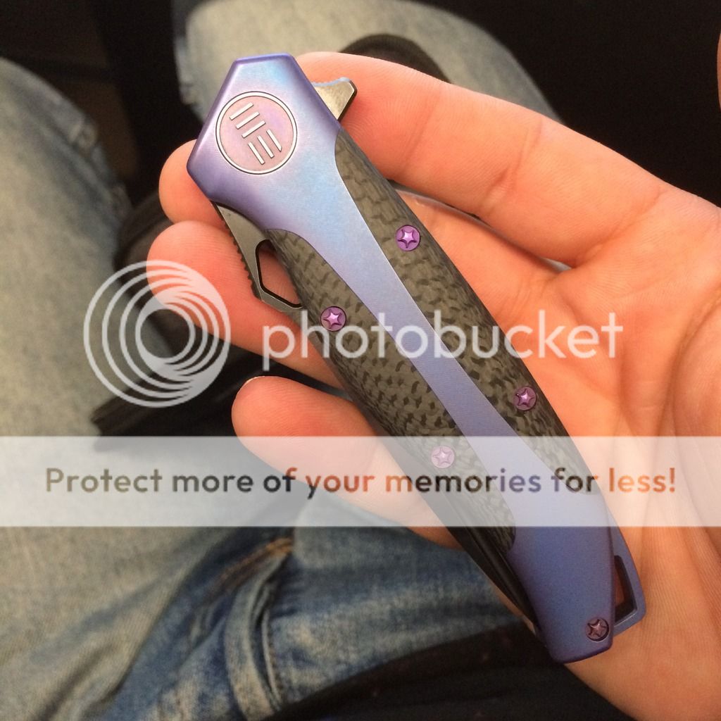 ISKski Feedback: +16 / =0 / -0 Joined Apr 11, 2011 Messages 1,073 Oct 3, 2016 #1 Mint direct from WE knives 606 Blue/Purple Anodized with Carbon Fiber inlays SOLD Shipped All included. No Trades Please. Please say I'll take it here in this thread. Thanks! Last edited: Oct 3, 2016