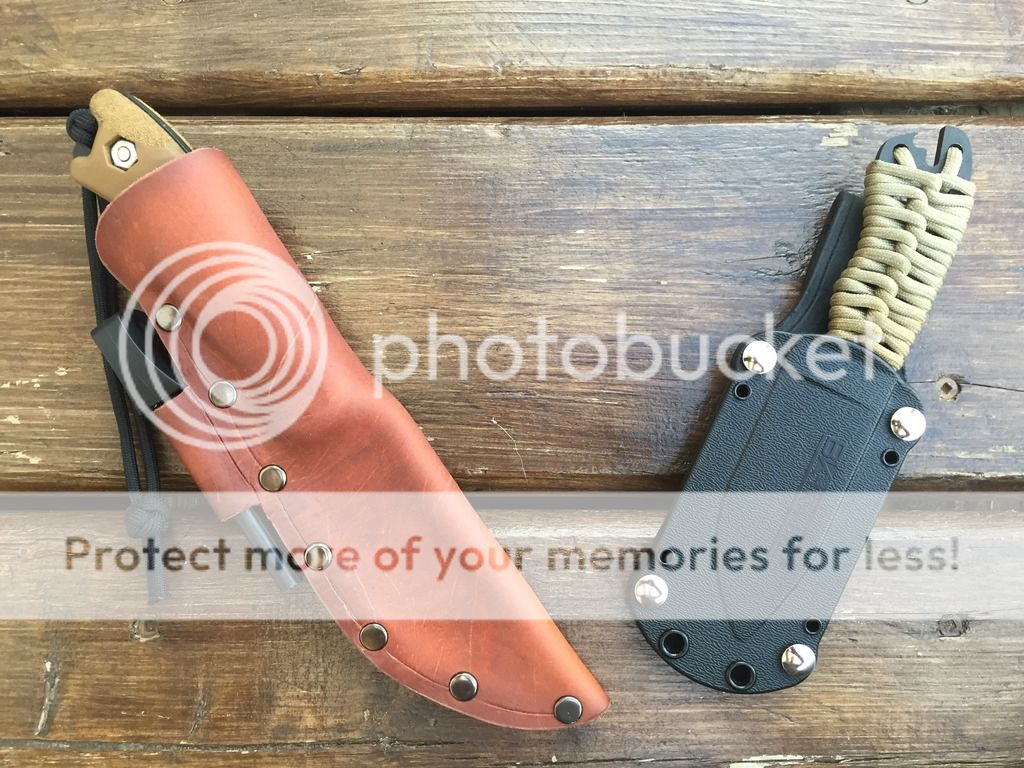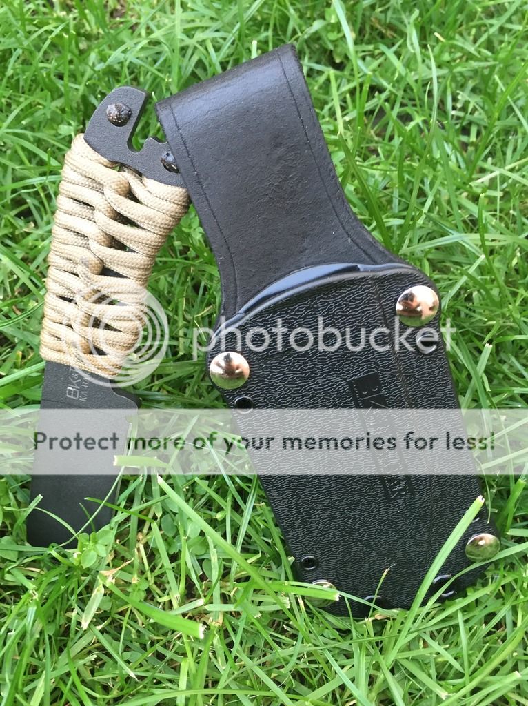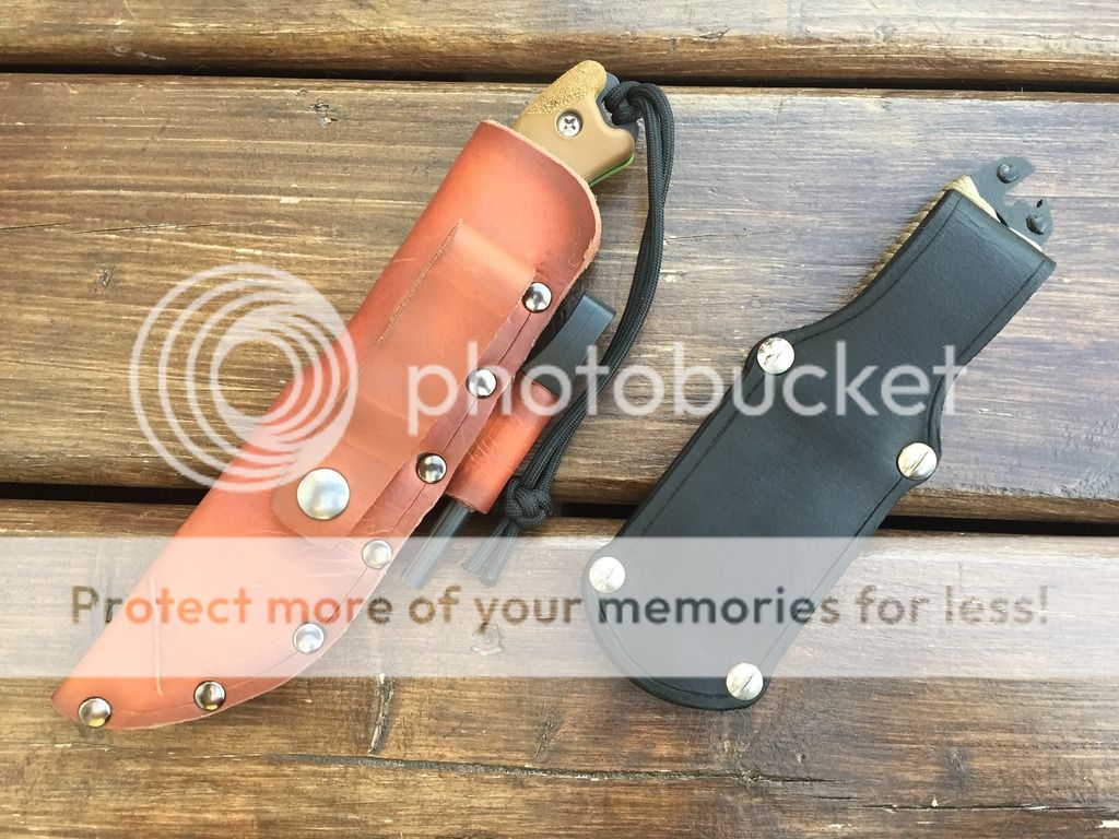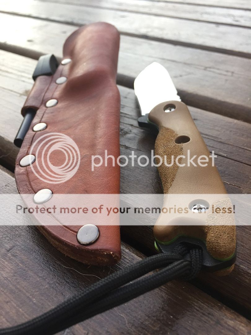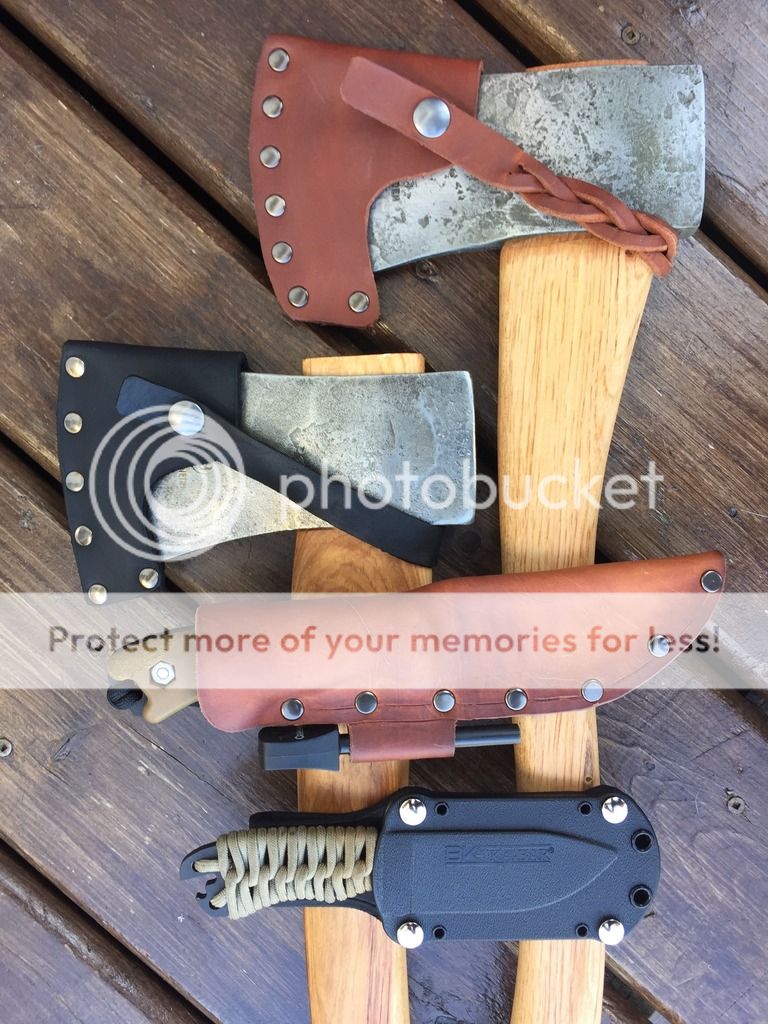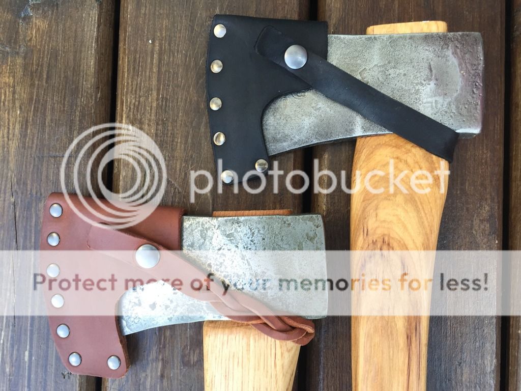 Not quite as fancy as Gassy's, but does the trick. Leather was "vinegarooned" with the stuff used to soak the axe heads in. Then liberally oiled up with Obernauf's. Still deciding whether or not to make the firesteel loop.
