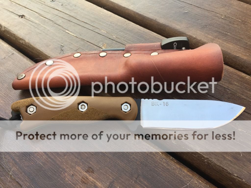 Next up was a leather pouch sheath for my BK16. Kinda ad libbed as I went along. Decided to use some of the five thousand rivets I has leftover from the axe sheaths to hold it together instead of sewing (mostly because I can't sew ). Also didn't have any contact cement, so had to use Gorilla glue on the welt.