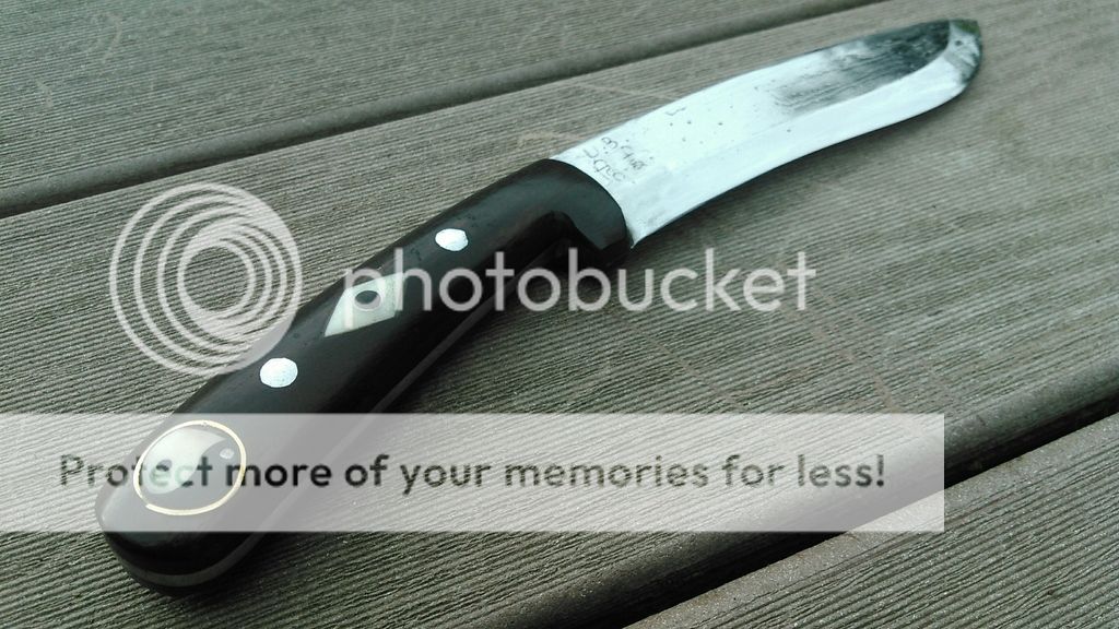 The handle had a small crack in the horn on one side, which had already been epoxied. Totally negligible, and does not detract from form or function. It is just barely visible in this pic, right by the butt cap and yin yang