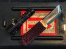 Ken Coates (kc custom) X-mas Tree Shadow with christmas tree, genuine celluloid scales, and a damascus steel Lummi WeeView attachment 1315728