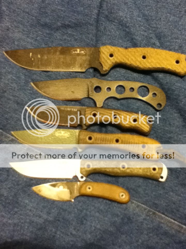 This week I'll be getting a satin/pink/black/leaner meaner for Suzy, black/ black/ yellow MOASH, TGLB-M with comp finish and g10, both with Buy Brown pants, a box of sheaths for other stuff from David, and a couple sheaths from Dwayne.