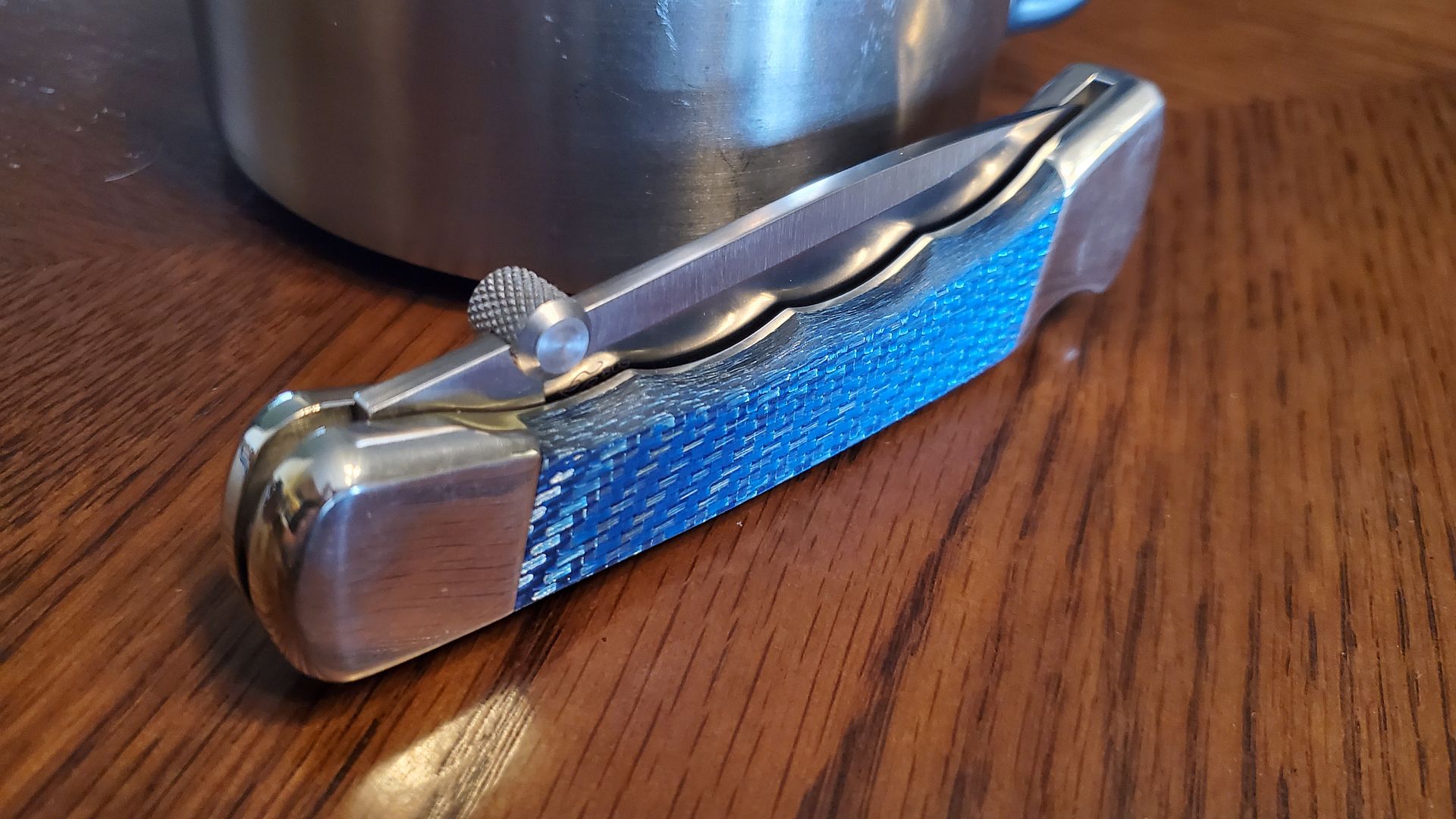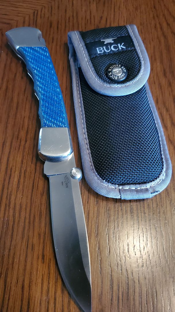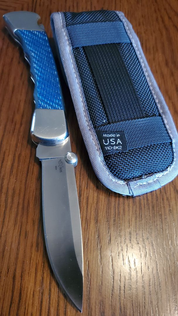Picture is worth a thousand words...An early (I think the first) DLT exclusive Buck 110 with rosewood scales and a drop point CMP S30V blade. Lots of character from use & carry (i.e. scratches and scrapes).