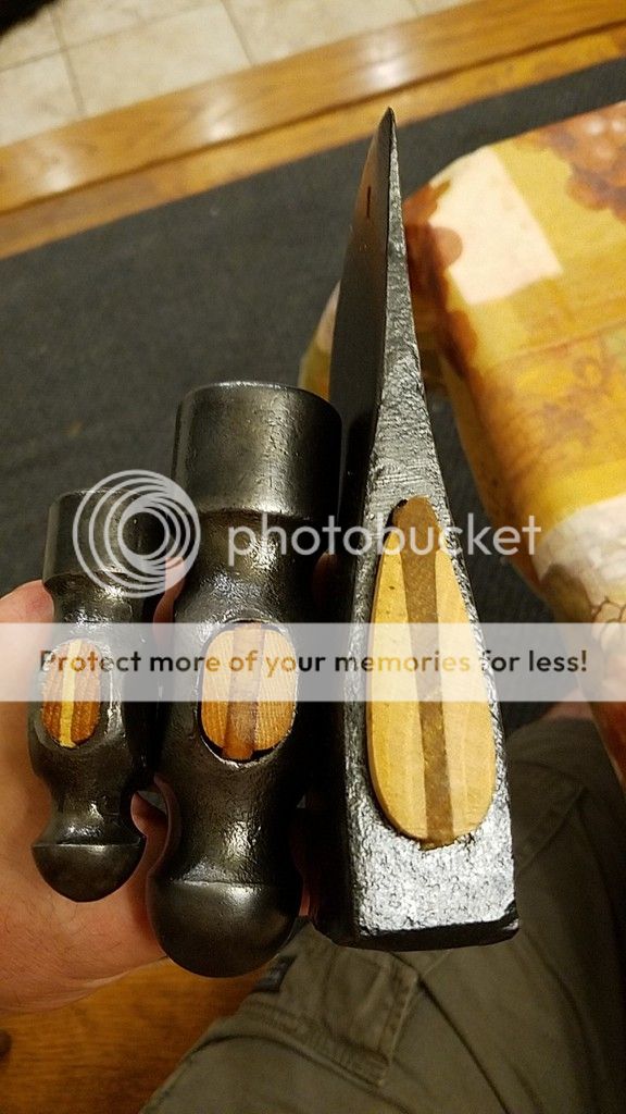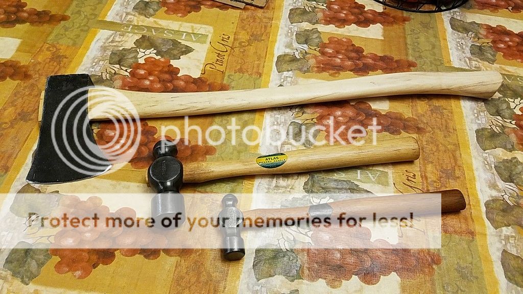 Found this cleaning out my grandfather's shed. I wish I took before pics. I guess it was either a salesman's sample or a toy from a kids tool set. Either way it's real steel and wood. Cleaned it up, gave it an edge, re-hung it and treated the handle
