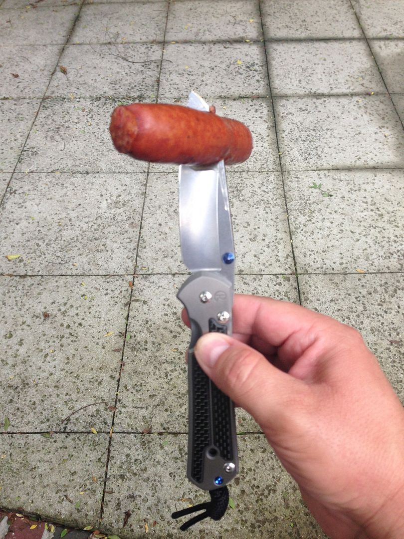 I used my small Insingo to trim a few small branches from one of the Japanese Maples in my yard. Everything went fine until I slipped a little and nicked the tip of my left index finger! Clean little cut, not much blood, and fixed it easily with some red Loc-Tite!