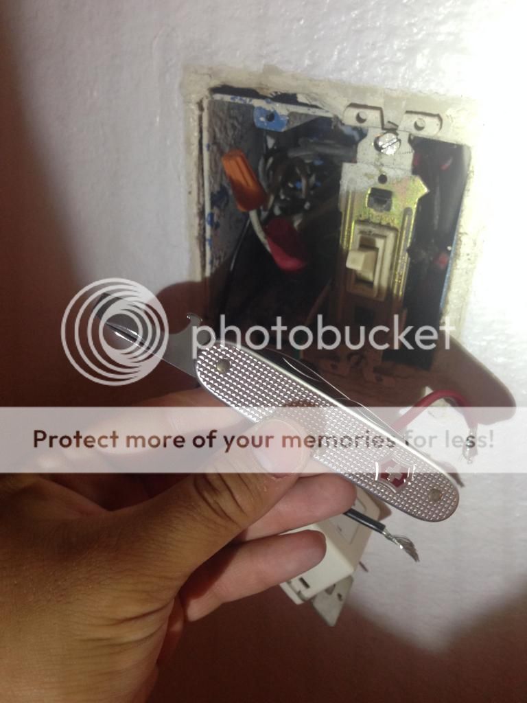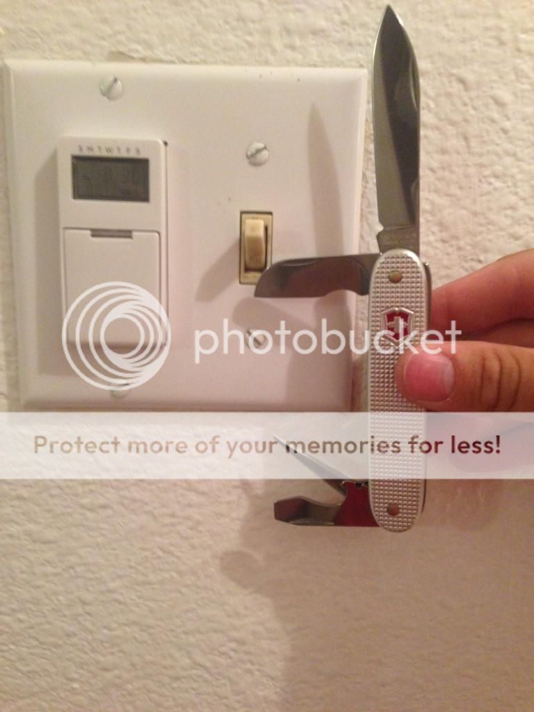 Last night my SAK Electrician helped fix the auto timer switch that went out a month ago. I haven't had the time (and when I do it's always when the stores are closed) but yesterday was the exception. With my Electrician in hand and a "want" in mind to put it to some real use I went to Home Depot and found an identical in size auto timer and brought it home. My trusty Electrician (and my wife) reminded me to shut off the breaker where I was working. THEN I was ready to work with my trusty Electrician and a flashlight in hand. The switch didn't stand a chance. Pulled off the cover after taking off the screws and using the flathead as a mini pry bar. The rest was all wing nuts and putting it back together.