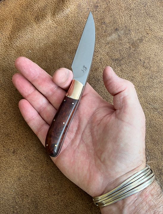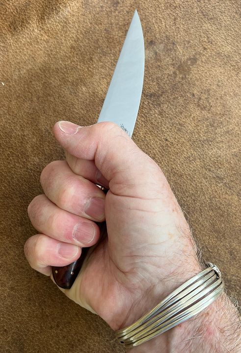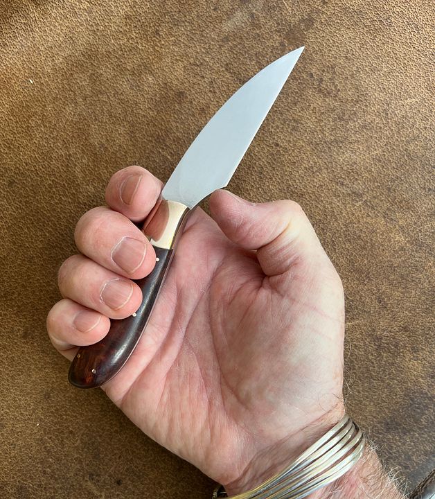 Greetings friends, title says it all, but I will just elaborate a bit to add that to me, it seems easier to present the edge of a knife to the medium being cut when the handle has a bit of a dip at the top of the butt, rather than the swell of a swayback, which draws the edge up away from the material, and forces more wrist actuation to get it back on point. That being said, I am sure there are a lot of knife tasks that are done with the traditional swayback pattern that I haven't thought of, or done personally. I've been close to making a swayback handled fixed blade a few times. I cut a piece of steel by hand, and it almost ended up a swayback, until I changed it before I put the handle scales on. Even have one drawn up in the CAD program, but can never seem to bring myself commits to it, at least not without some background knowledge. Doesn't make sense to me to make a knife I don't have some idea how to use... But I do find the shape attractive, and have been wanting more and more to make one. Please enlighten me, so I can do so with my eyes open. Thanks!