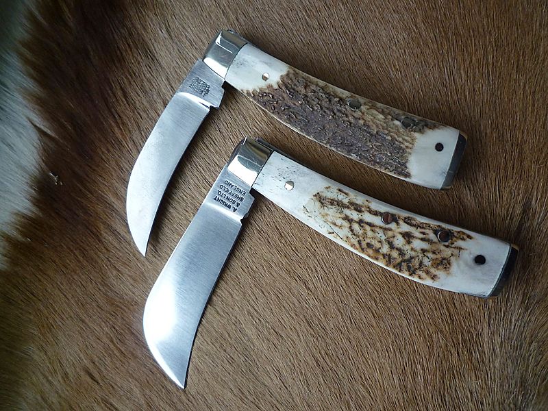 - yes, think you're possibly correct. The pruners sometimes have a squared butt, but their influence can be seen, and of course, much to do with the reverse grip.@Duvel Thanks Mike, it is very sinewy and I believe Tony Bose was inspired by certain Sheffield Pruners, the high quality type, the French make Pruners that are very serpent-like too (their word for Pruner I think) Another feature of this knife that impresses is the inclusion of a nail-nick. It's clearly not necessary when so much blade is above frame but to include it in the swedge/swoop is a masterpiece of execution- sleek.