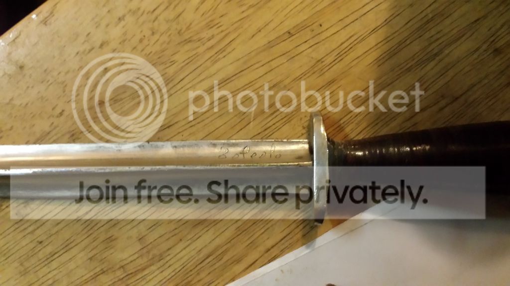 Seriously though, it looks like an old military dagger. I was thinking possibly a bayonet but it doesn't appear to possess any means for attachment. Wish I knew more. Good luck.