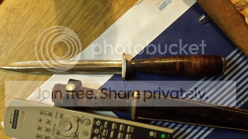 Homemade knife made from a trifoil bayonet. Maybe from WWII, as these were popular theater knife type conversions, with French Lebel bayonets being the most popular blade donors.