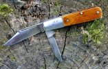Here’s a Curved Drop Point Barlow. I had seen these in some catalogs and K’roo makes one. His is just over 4 inches with a blade @ 3 1/4 inches. The covers are African Blackwood. Here’s an old catalog image.