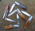 The profiles suggest they were made by Utica!!It’s Sawcut Saturday! I finally found a couple of genuine sawcut bone Barlows in decent usable (one more so than the other) condition. Both are from separate Ebay sellers, but I think they are from the same manufacturer. The only markings they have are “Made in USA” on the tangs, which is good enough for me.