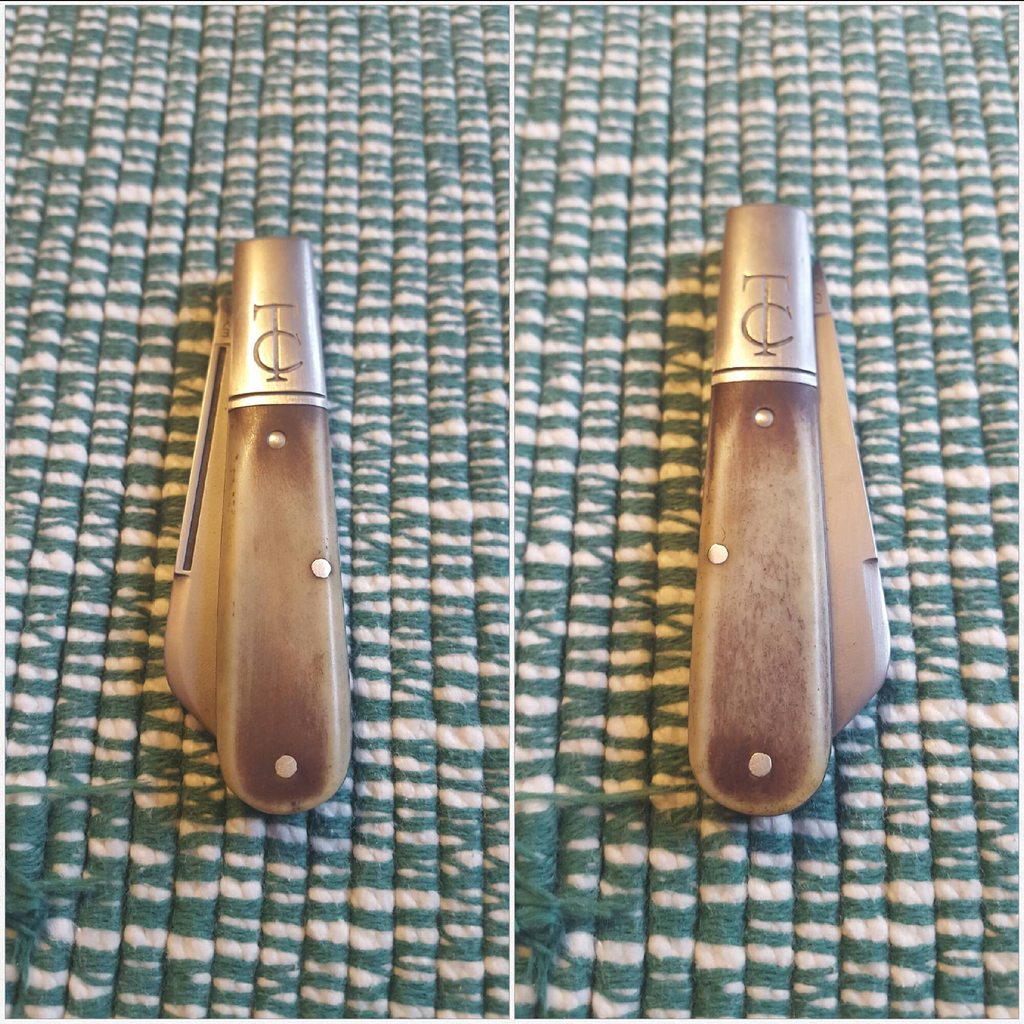 I had an early Sheepfoot Smooth Ivory Bone TC that I have used to the point of deformation of the blade, and loved enough to refrain from selling in the most dire circumstances. However, for some reason I recently decided to try to dye the smooth ivory bone red (tbh, I had an Anniversary Clip Point in Red Soup Bone get "stolen" out of the mail after barely deciding to sell it for extra funds on a vacation) using Hibiscus tea. It didn't turn out. It was a disappointing brown, and sanding the edges only helped it slightly.