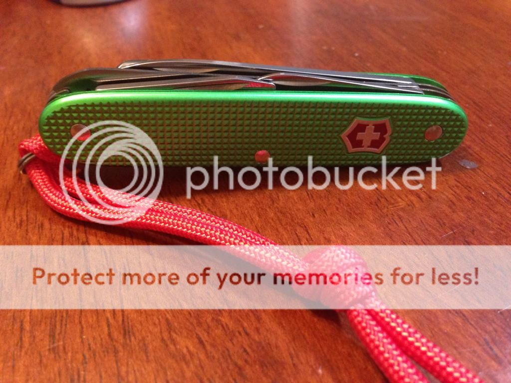 Well, my package came in today and it was a "beautiful letdown" being that it wasn't what I ordered (no key ring apocalypse green Farmer) however, it is a very nice apocalypse green Harvester (with key ring :grumpy. Since I make the best of every situation I treated the package as I would a gift: I was thankful for what I received and made it my own. I decided I could either add a lanyard to prevent hot spots from the key ring and add a bit of extra color to it, or file it off. So for now the Harvester is the way I received it with a red lanyard to compliment the red shield