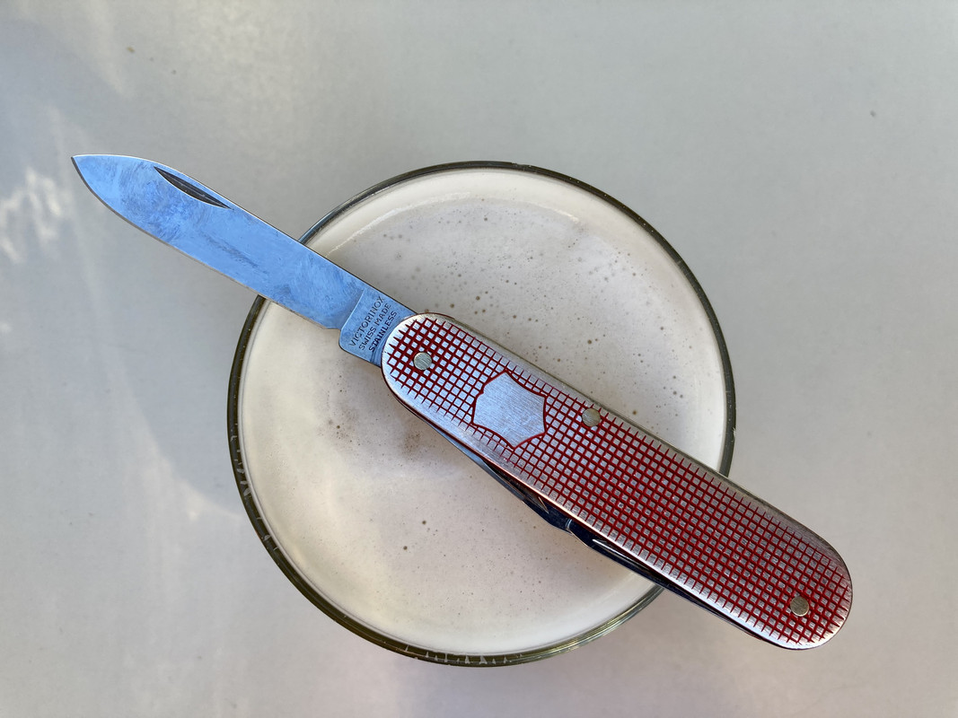 I've been eyeing one of those for years, but I've been wary because I've heard some of them come with the same crimped blade for the pioneer, and a crimped single blade would drive me crazy.Rainy day, simple day with my single blade SAK