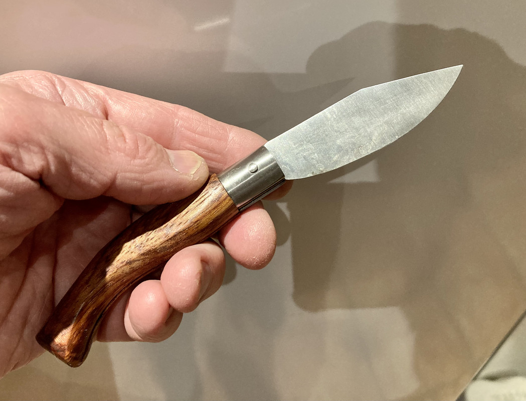 Looks like a proper 47 now, Jon.Lunchtime here at the McD house. 3 kids holler “Dahhhhhhd, can you peel us some apples?” Wait- I have a new knife that needs patina…
