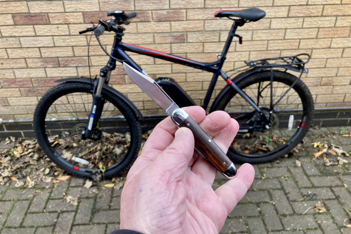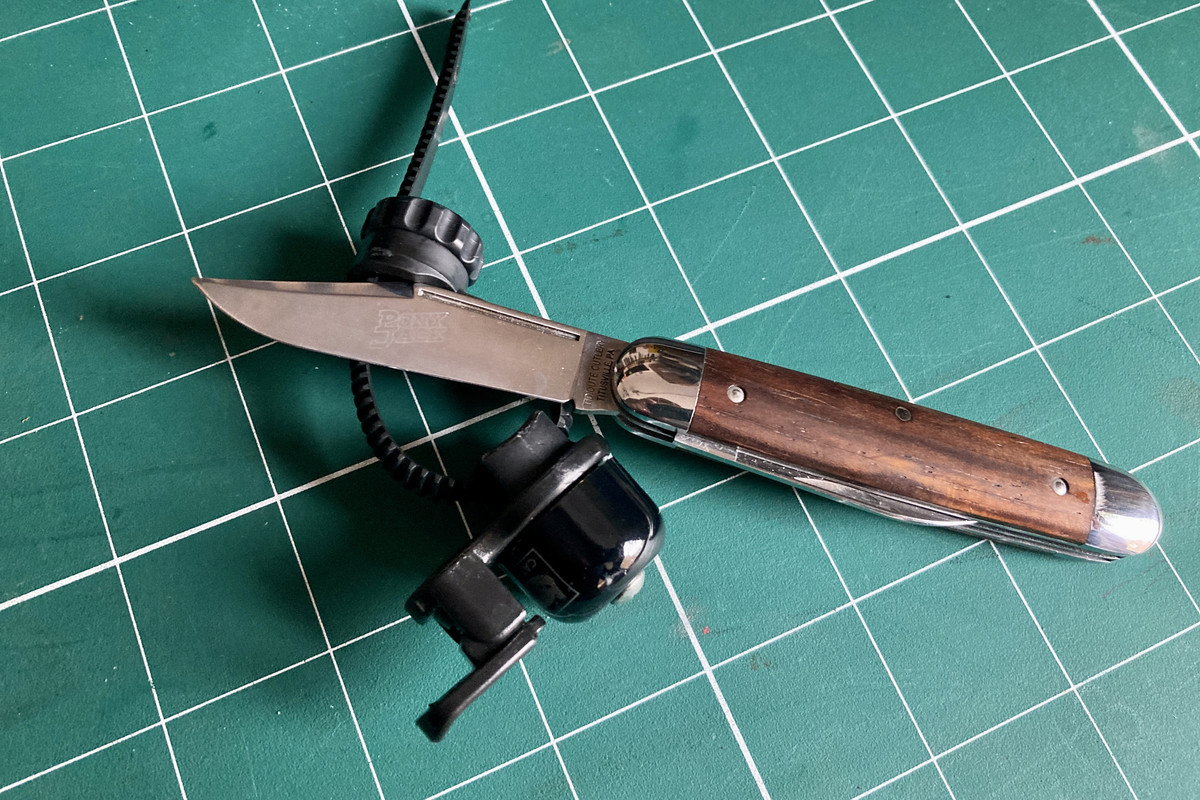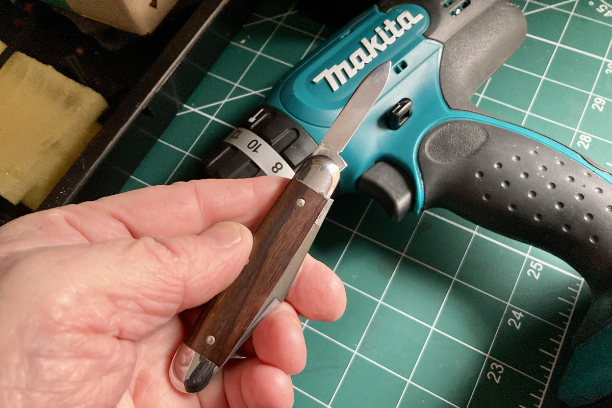 Very cool knife.“… Yes, it has four blades. Clip, sheepsfoot, and spey, as well as the leather punch. That’s the one with the fancy spiral cut on the back. I think that, as well as the coined liner on the back means it was what they called “Premium Stockman”.