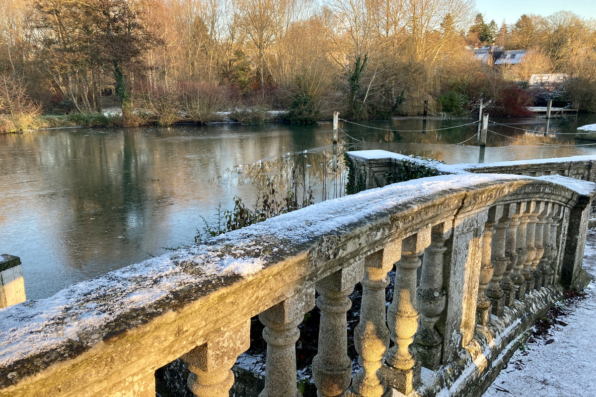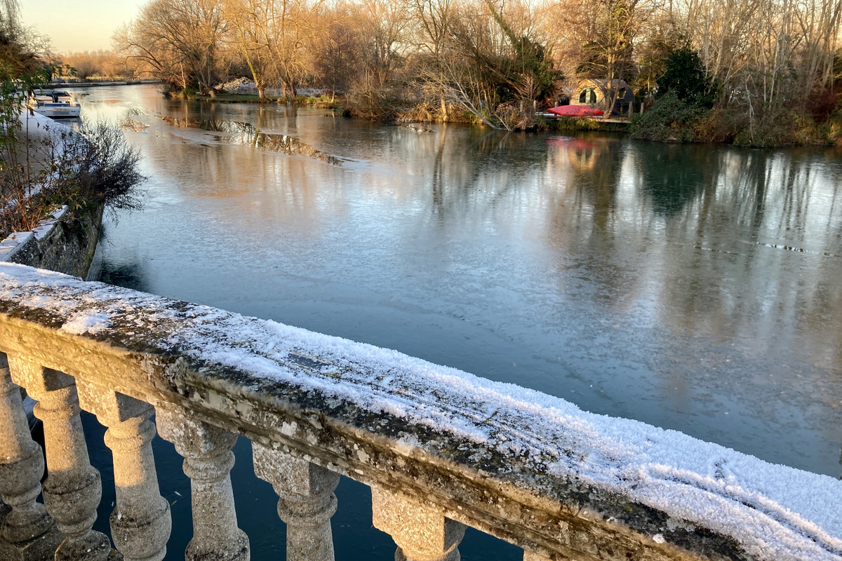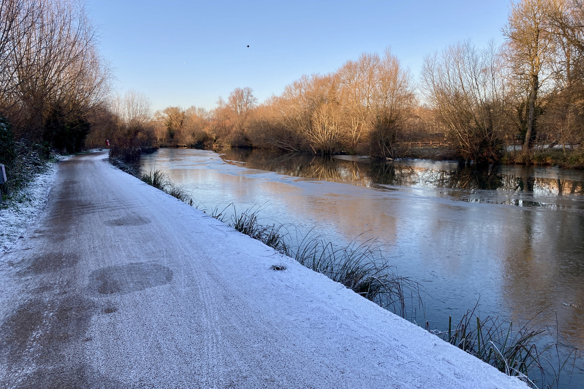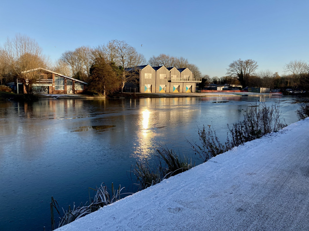The canal/river was frozen in places,unusual in England down south.
