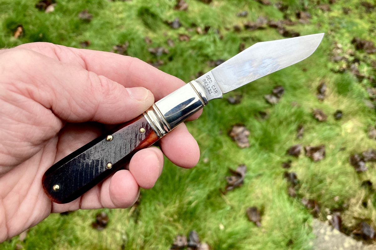 A red bone commemorative lock-back knife from the early 1980's getting some pocket time today. Seems it was a joint venture between two or three companies. 3.25 inches closed.