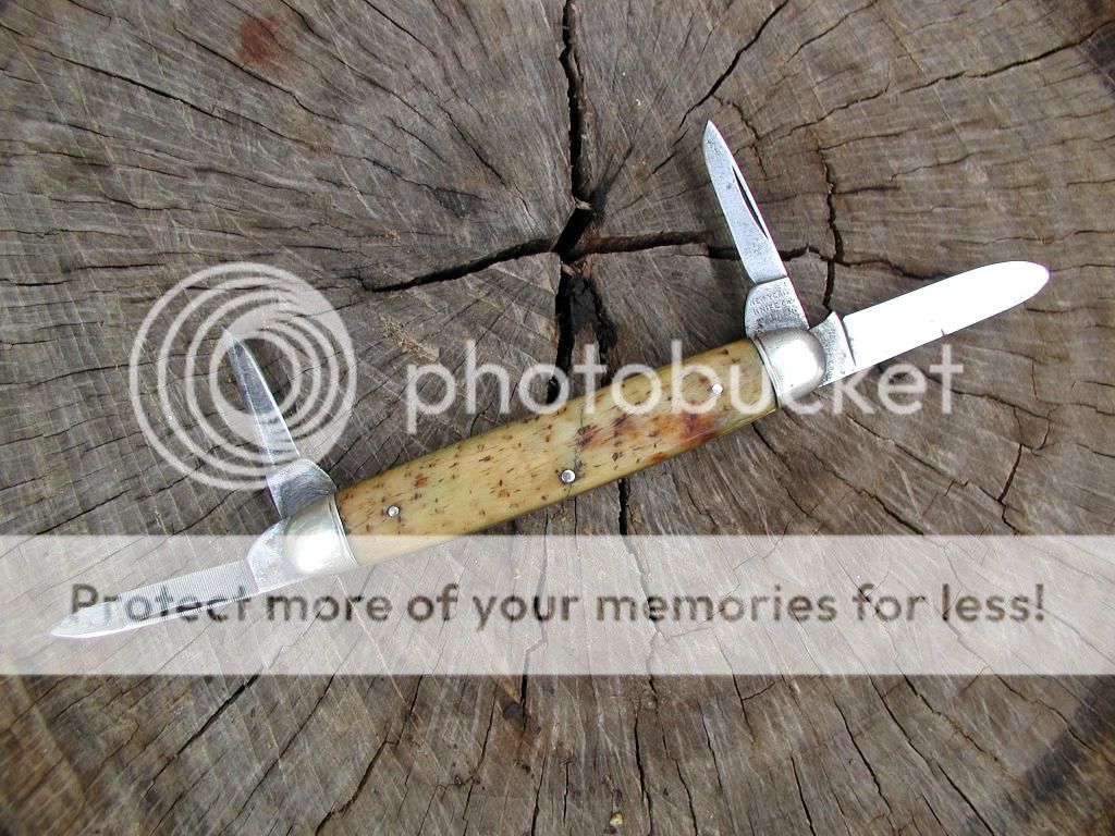 It is cow bone with the marrow side out. Case and others used to do that as well, but most of it was dyed instead of natural.