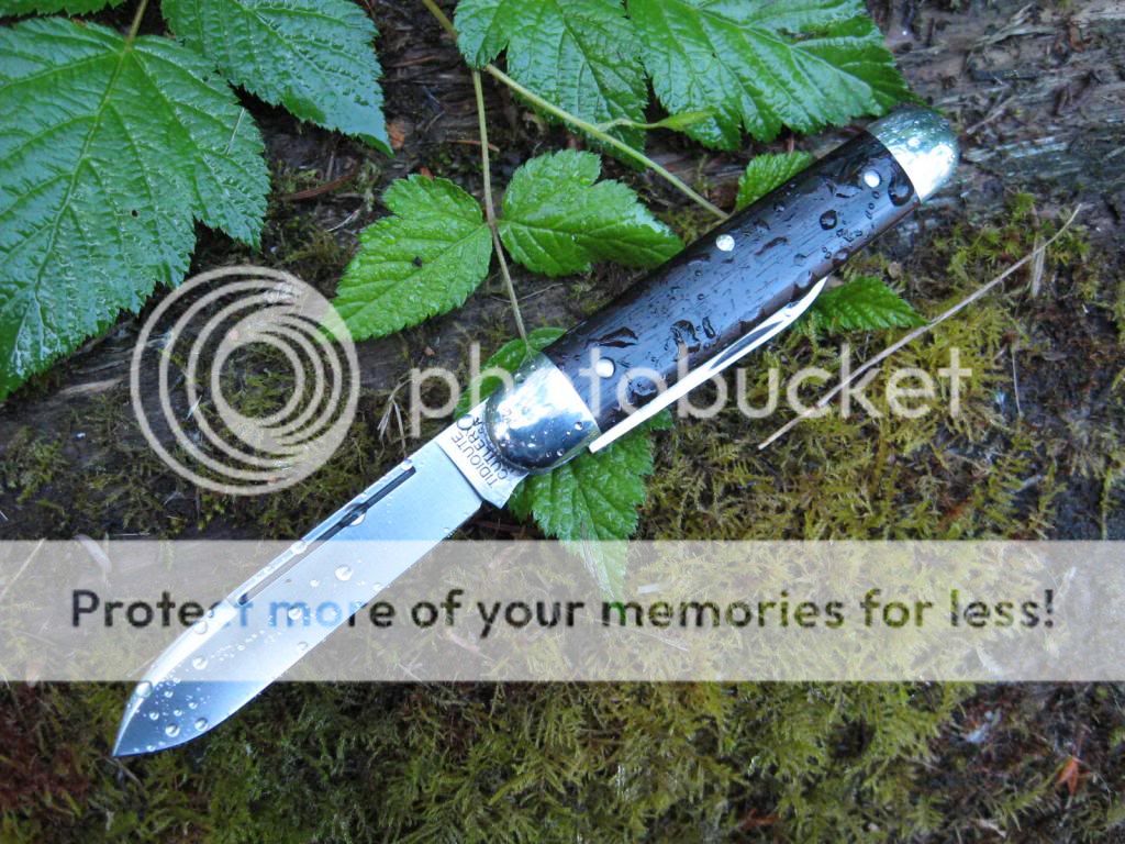 I thought this humble but very practical Opinel nr 7 had earned pocket time. I think it needs some sandpaper and a soaking in teak oil, it has been some time it had a thorough oiling. One mental note here: if you turn an Opinel into a dedicated friction folder and use oil as a finish, soak the knife in oil BEFORE you snug up the pivot. Some of my other Opinels are a bit too tight for comfort because I did the other way round.
