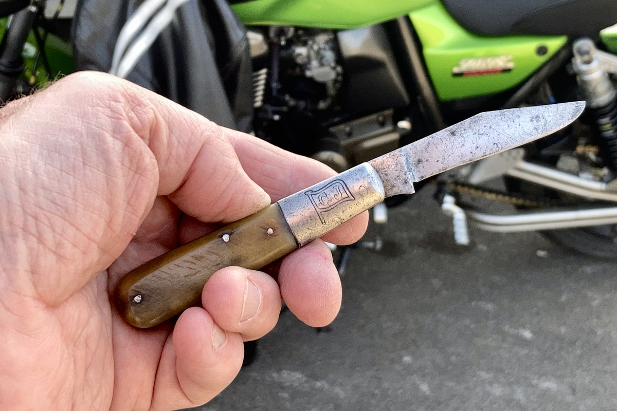 12mm is common for Japanese motorbikes over 13mm more commonly used elsewhere.Wonderful knife, José! Artistic blade etch and attractive handle!