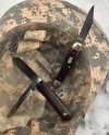 An old Ulster Electrician with it’s unique round butt cocobolo for Woodnesday, and my Half Stop Schrade 804 for Whittlerwednesday.