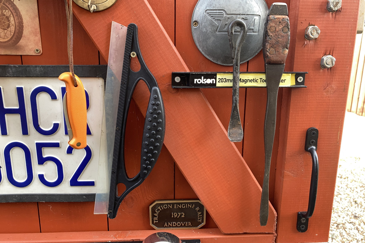 LOL!When I am working in my shed this door is normally left open to the elements, so I only put hardy stuff there that can take a bit of rain.