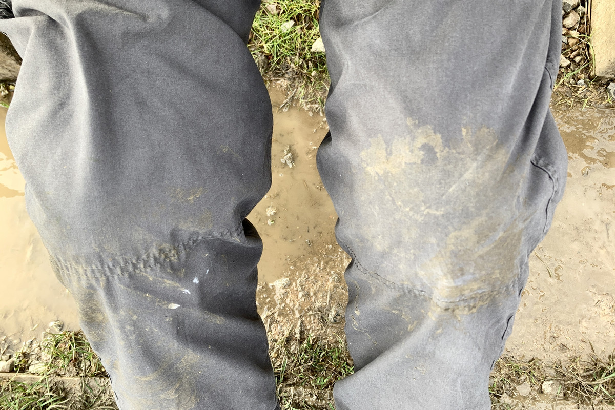 I started to put extra peanuts on the posts,my feet slid and then stuck in the mud my knees gave way and I went down.