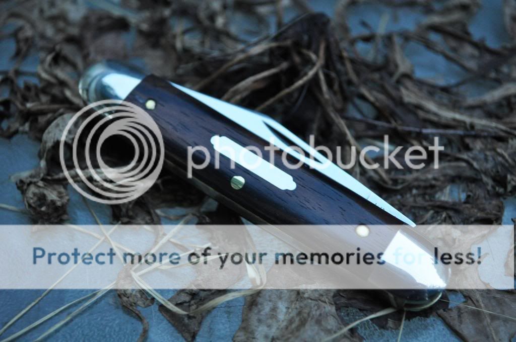 "Rhapsody in wood" indeed! I love these covers.... Just crazytalk in color and pattern, yet reminding me of mahogany (thanks, Barry, for your helpful pictures and description). It has a nice heft to it as well, which might not seem desirable in a knife of this relatively large size but which I was hoping for.