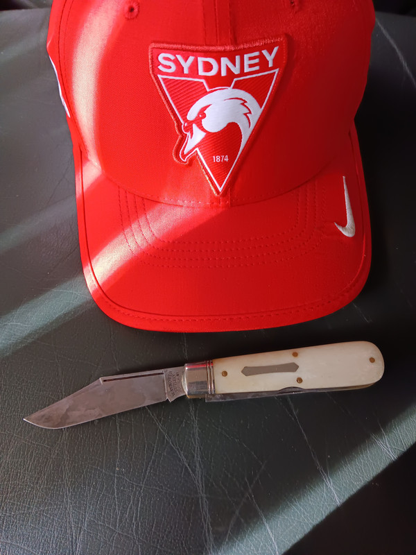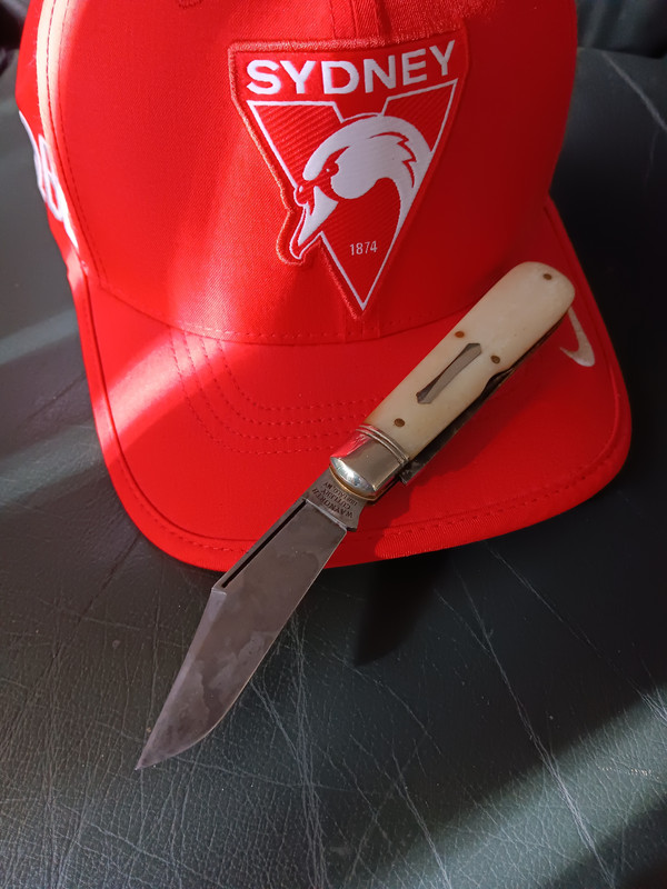 Very nice Travis! Wasn’t in the cards for me this year; hope you (and Nate?) are having a good time.One of the GEC Rendezvous Knives. A 39 Giraffe bone with a clip and a Spey blade. This one is not mine.