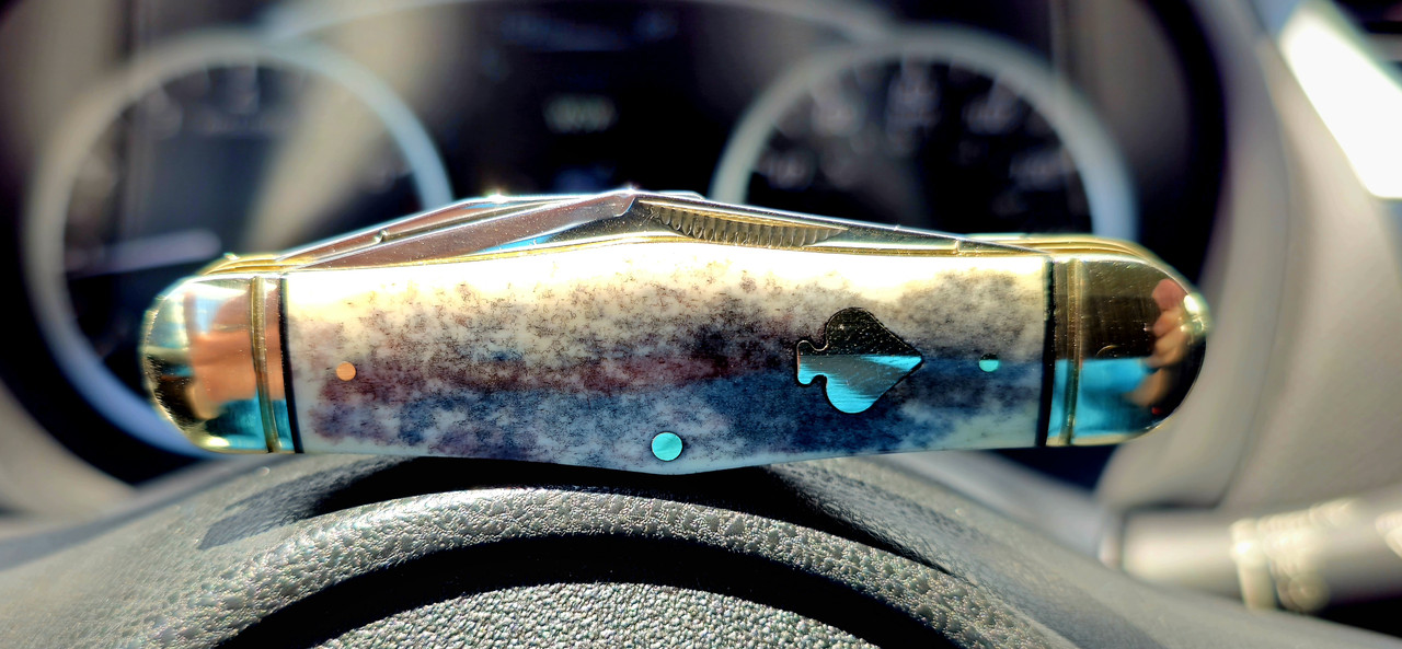 I agree with Bob; even though I have a rubber mallet that would probably be the right tool for the job, I don't think I have the guts to try the centering mod. o_O:oops: Good work, Chris! I also think the stag on your trapper is very typical of "contemporary Case stag" which tends to be rather smooth and creamy. Not my first choice of stag characteristics, but still good stag IMHO.:thumbsup::thumbsup::cool: