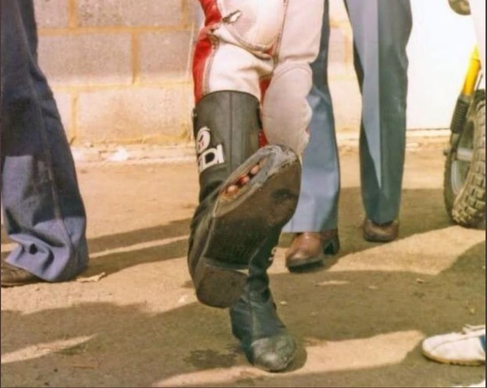 my boots sometimes hit the deck (big feet) but this is his worn down to his bare feet.