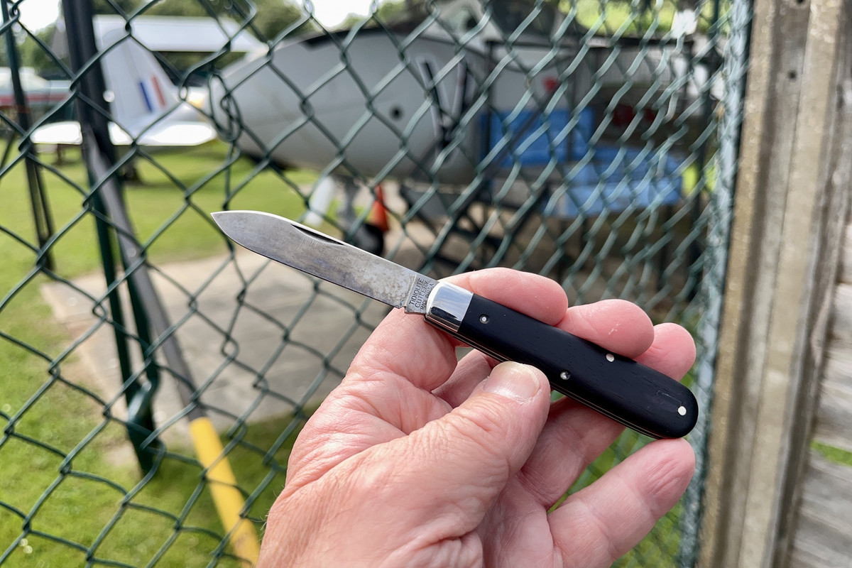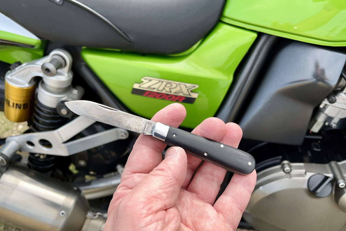I cut up some fried chicken with this #86 last week and just wiped the blade on my pants. This mess is the result! I’ve been trying to even it out cutting fruit, but I think a date with a tube of Flitz is in order.